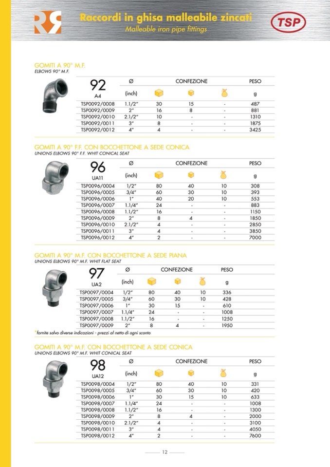 UNIONS ELBOWS 90° F.F. WHIT CONICAL SEAT