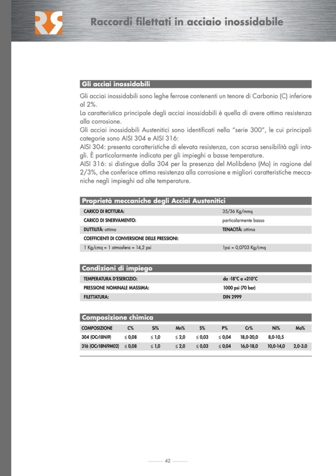 AISI 316: si distingue dalla 304 per la presenza del Molibdeno (Mo) in ragione del