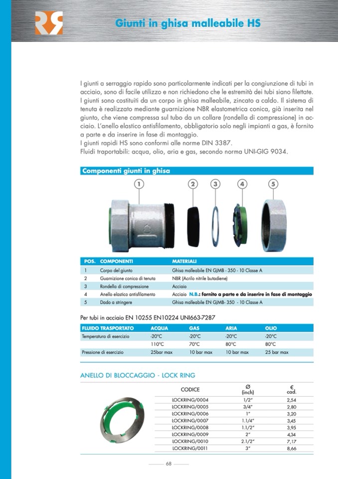 I giunti sono costituiti da un corpo in ghisa malleabile, zincato a caldo. Il sistema di