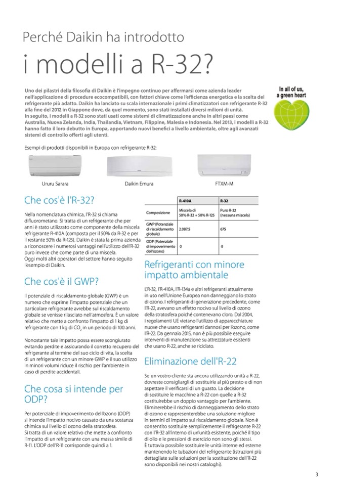 refrigerante più adatto. Daikin ha lanciato su scala internazionale i primi climatizzatori con refrigerante R-32