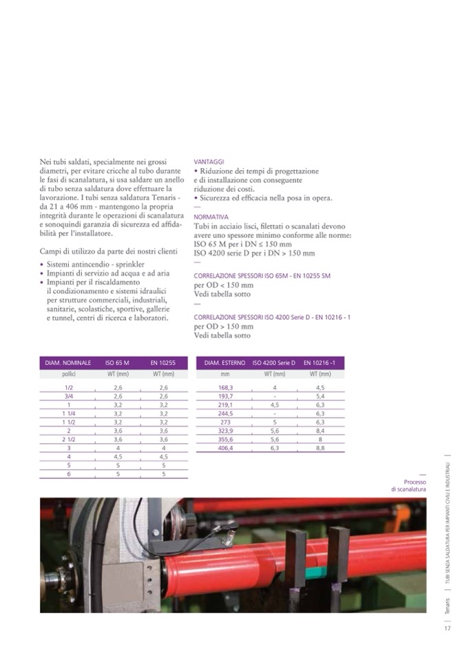 Tubi in acciaio lisci, filettati o scanalati devono