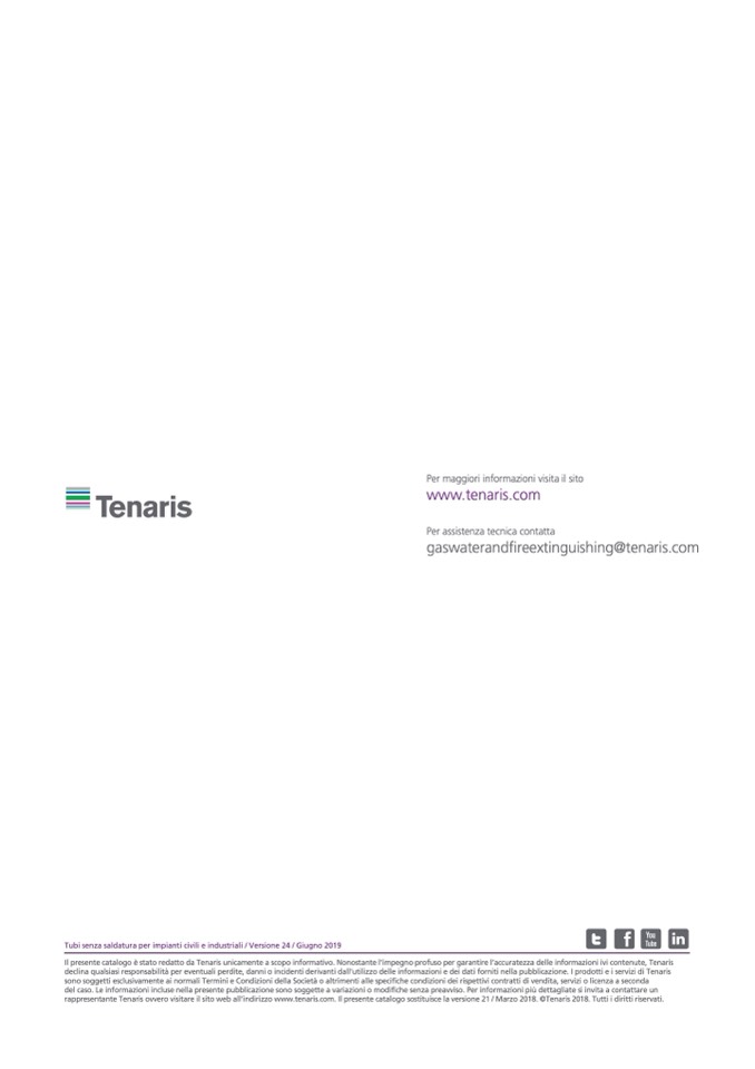 Il presente catalogo è stato redatto da Tenaris unicamente a scopo informativo. Nonostante l’impegno profuso per garantire l’accuratezza delle informazioni ivi contenute, Tenaris