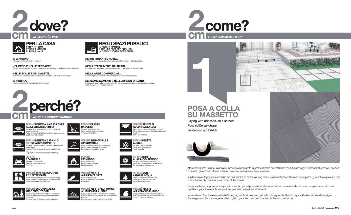 All’interno di aree urbane, la posa su massetto rappresenta la scelta ottimale per realizzare zone di parcheggio, marciapiedi, percorsi pedonali