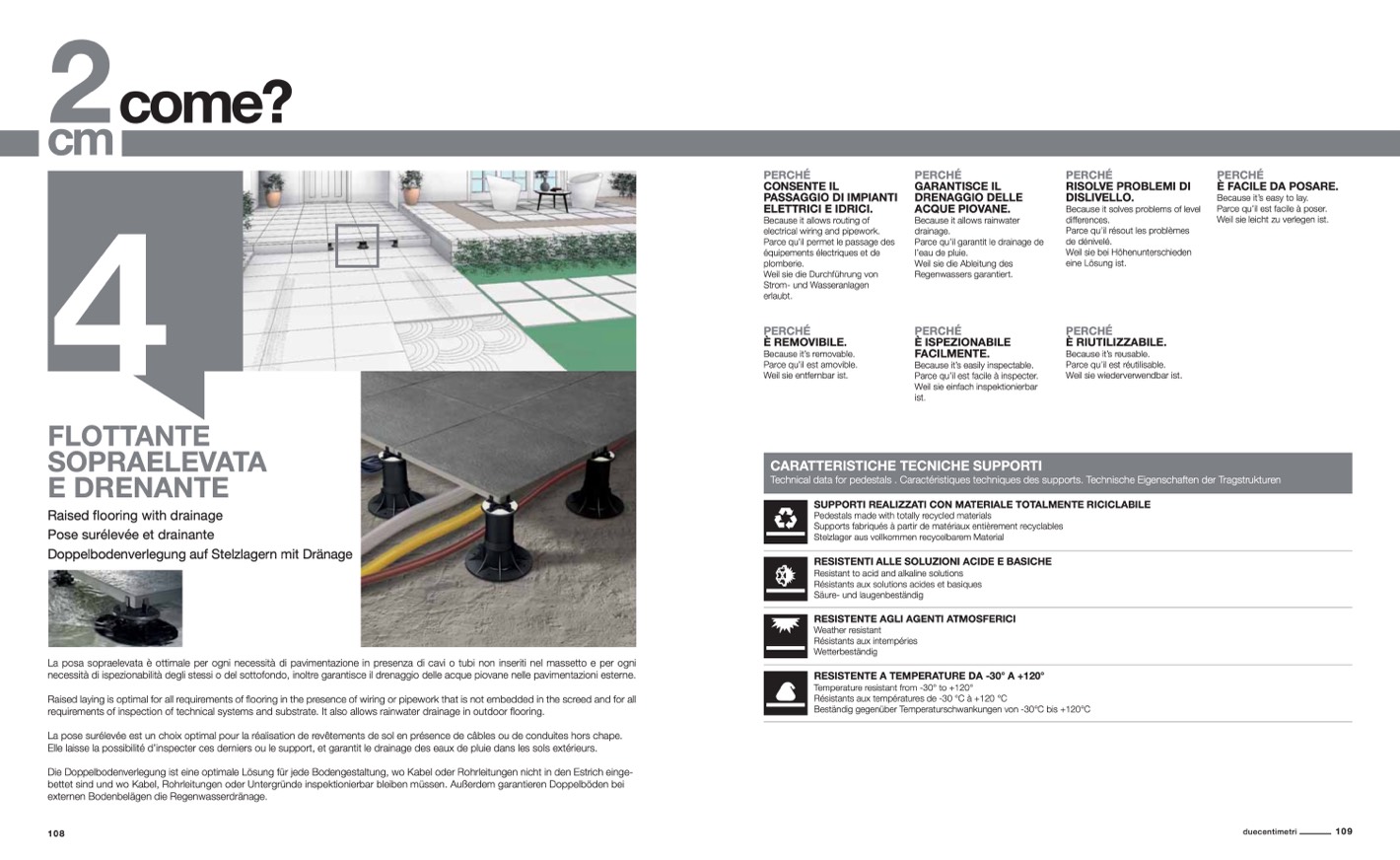 Technical data for pedestals . Caractéristiques techniques des supports. Technische Eigenschaften der Tragstrukturen