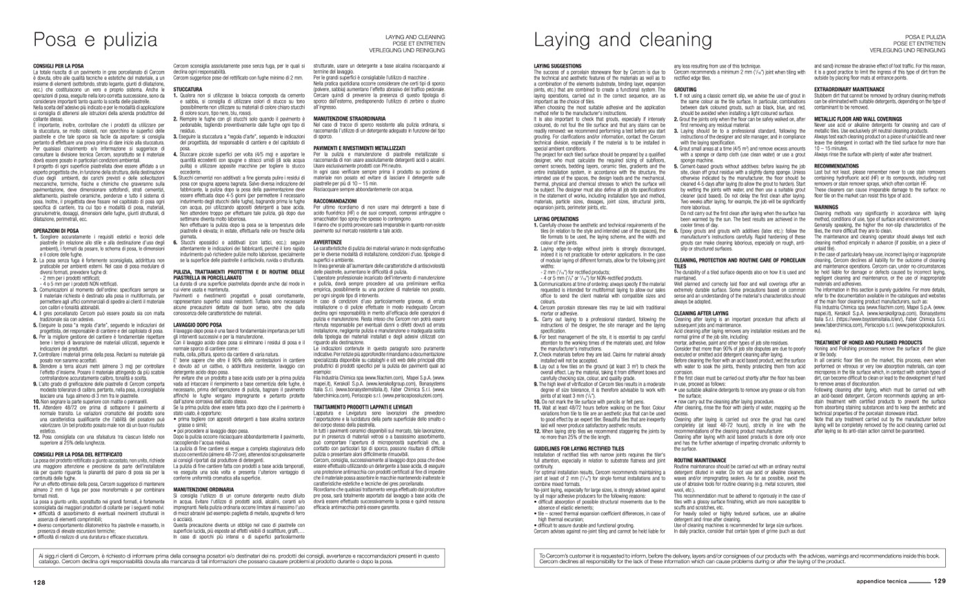 Cercom declines all responsibility for the lack of these information which can cause problems during or after the laying of the product.