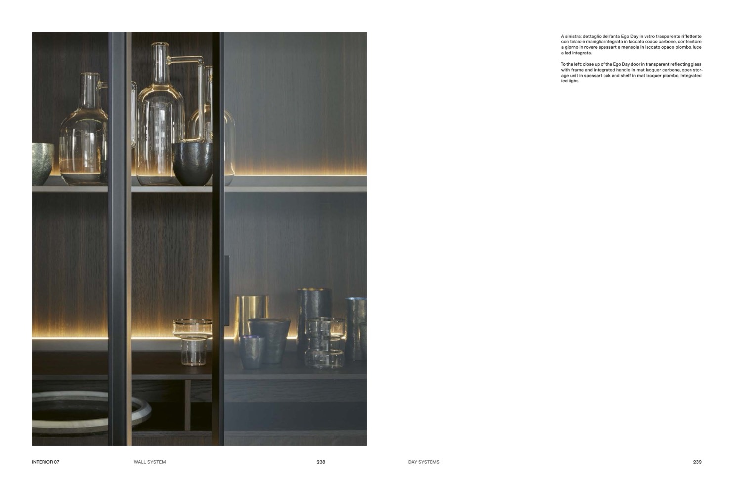 A sinistra: dettaglio dell’anta Ego Day in vetro trasparente riflettente