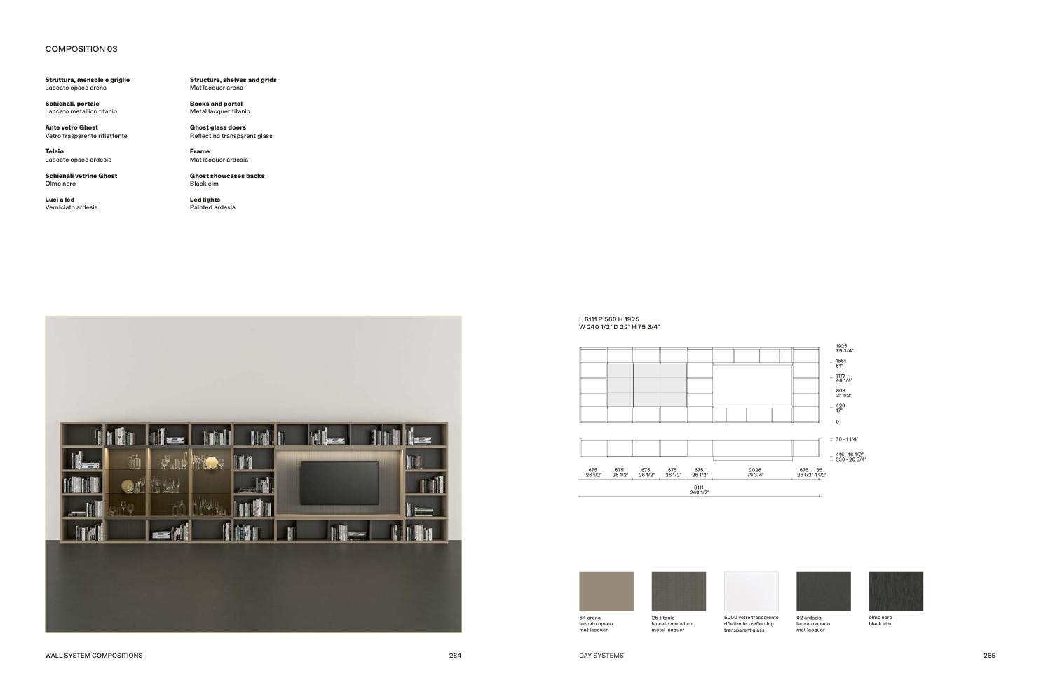 W 240 1/2” D 22” H 75 3/4”