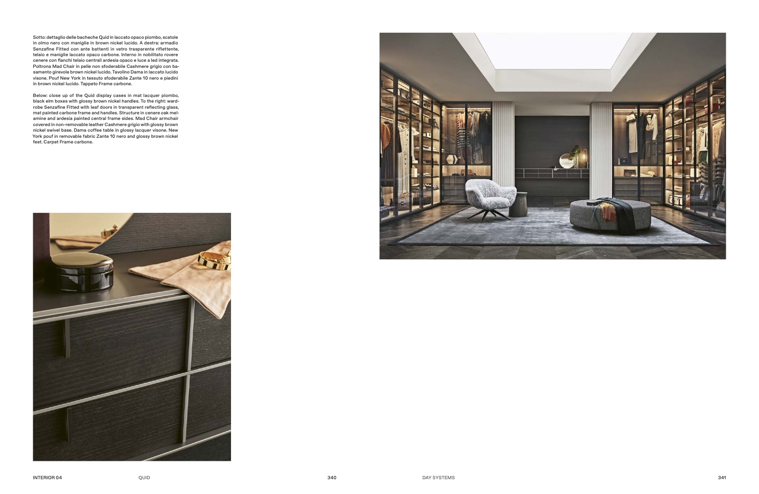 Below: close up of the Quid display cases in mat lacquer piombo,