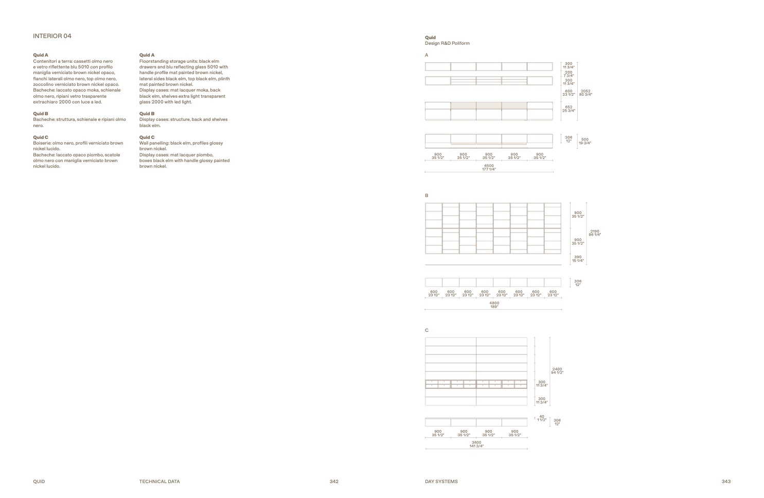 lateral sides black elm, top black elm, plinth