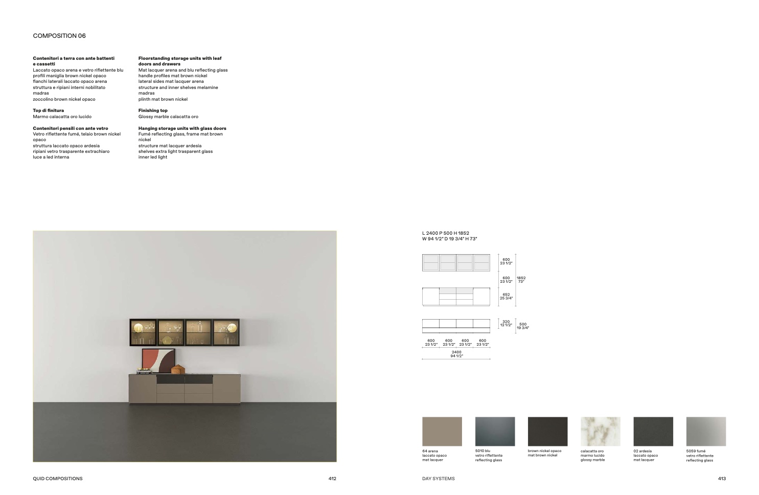 Mat lacquer arena and blu reflecting glass