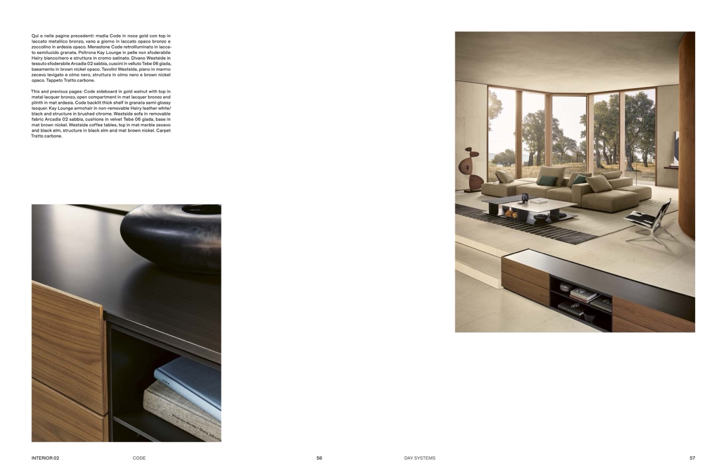 Qui e nelle pagine precedenti: madia Code in noce gold con top in