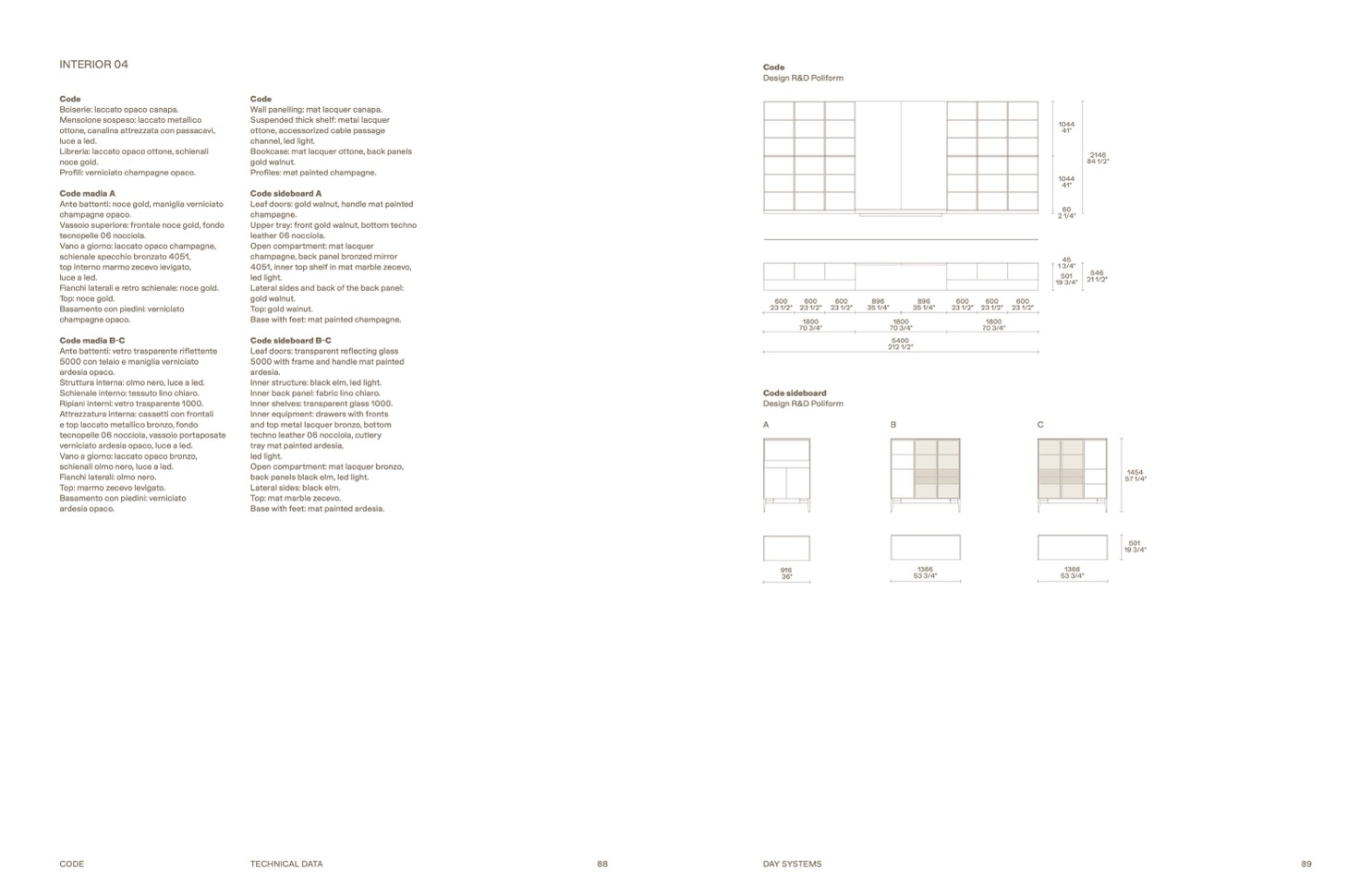 Bookcase: mat lacquer ottone, back panels