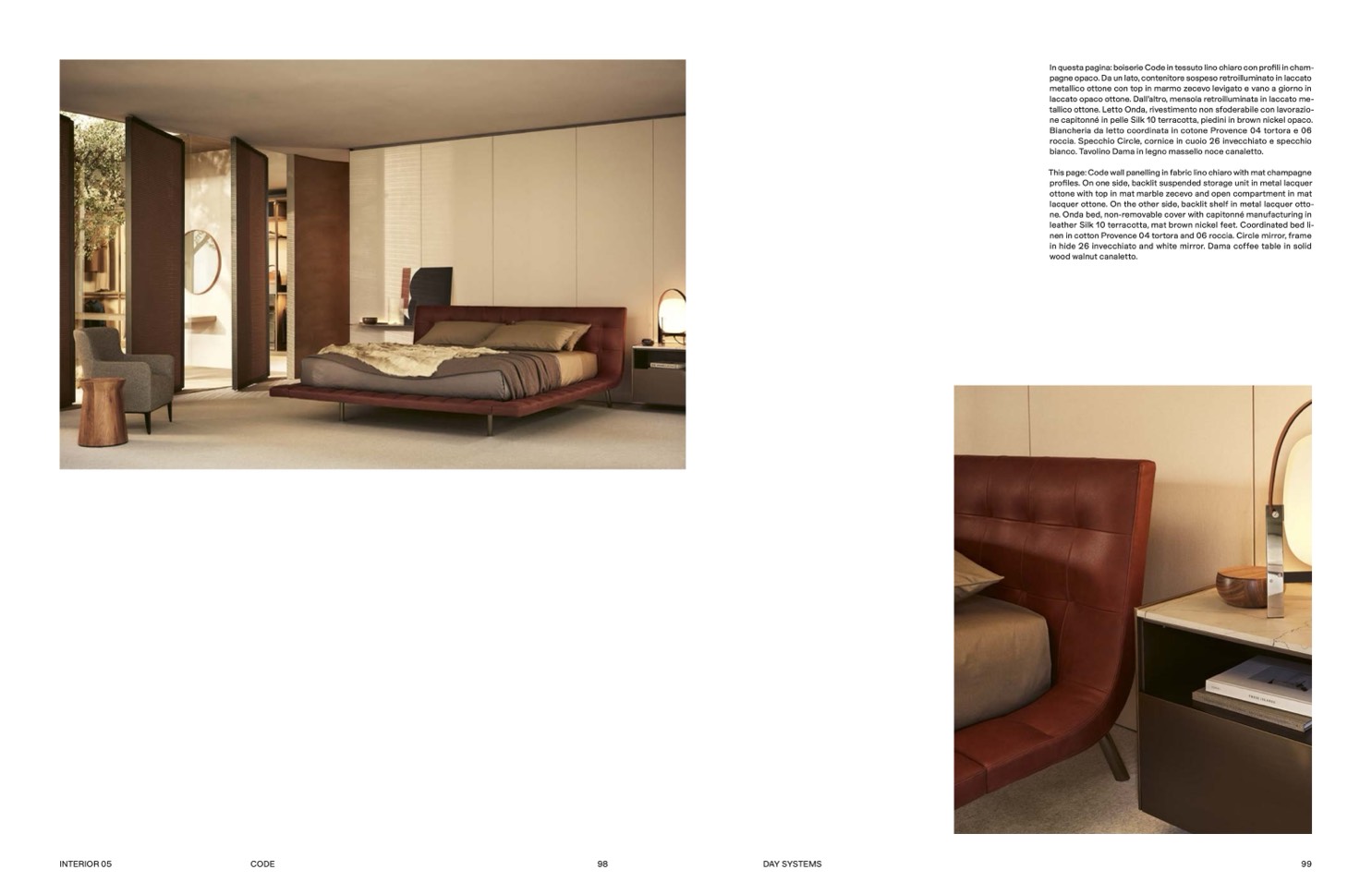 leather Silk 10 terracotta, mat brown nickel feet. Coordinated bed li-