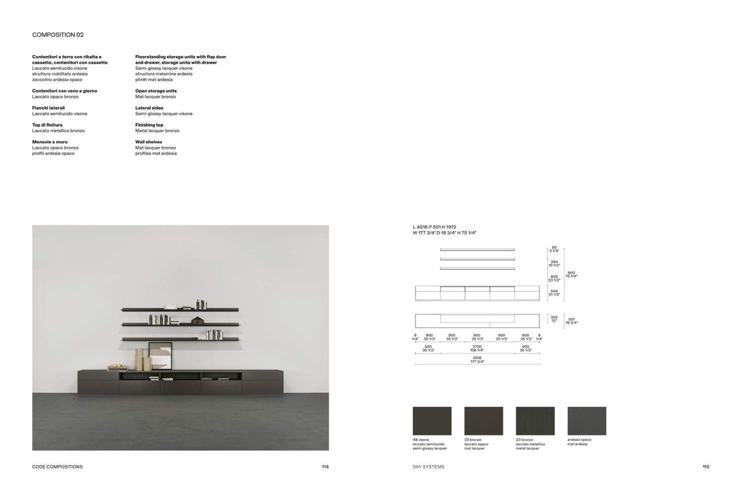 W 177 3/4” D 19 3/4” H 75 1/4”