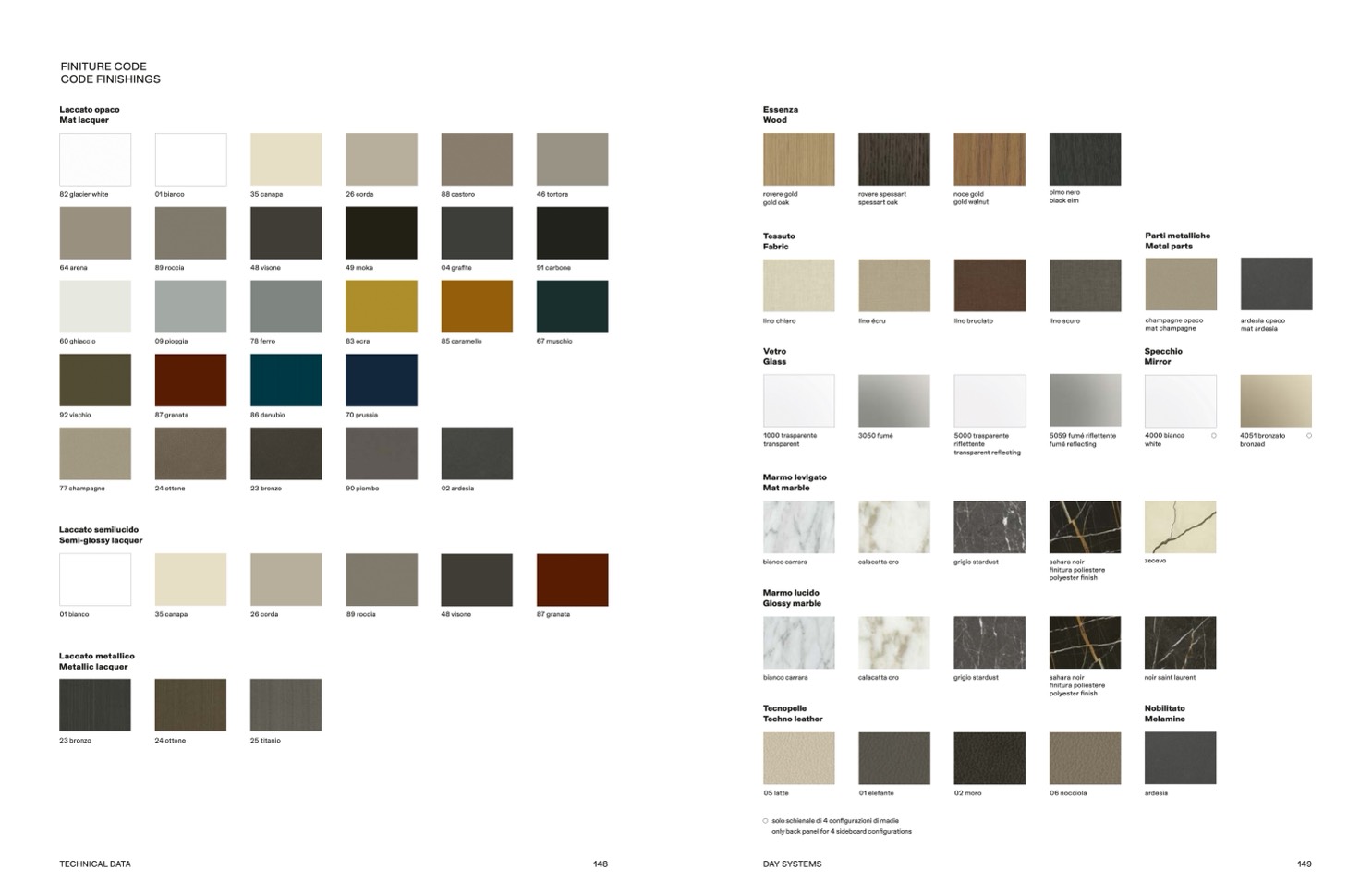 solo schienale di 4 configurazioni di madie