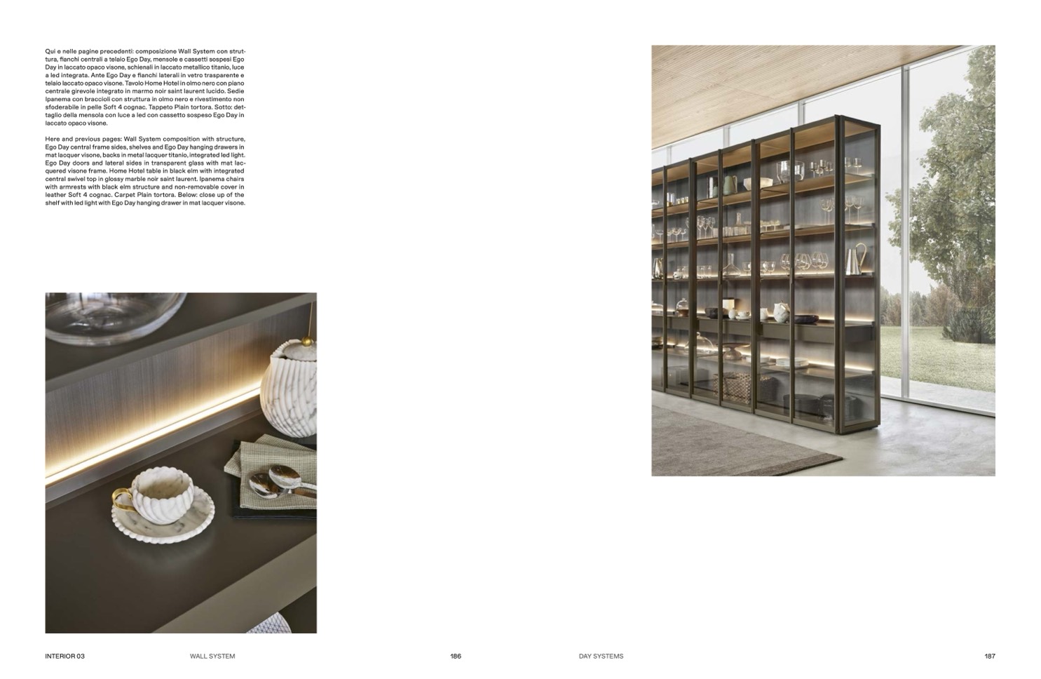 tura, fianchi centrali a telaio Ego Day, mensole e cassetti sospesi Ego