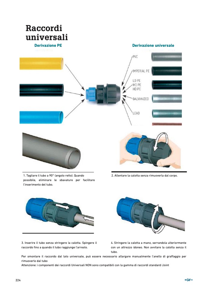 Per smontare il raccordo dal lato universale, può essere necessario allargare manualmente l’anello di gra