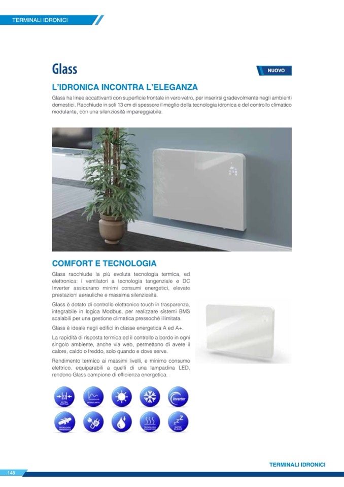 domestici. Racchiude in soli 13 cm di spessore il meglio della tecnologia idronica e del controllo climatico