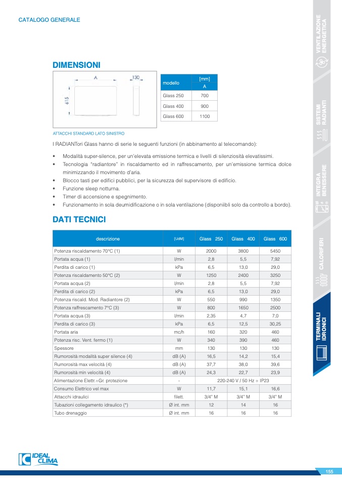 • Tecnologia “radiantore” in riscaldamento ed in raffrescamento, per un’emissione termica dolce