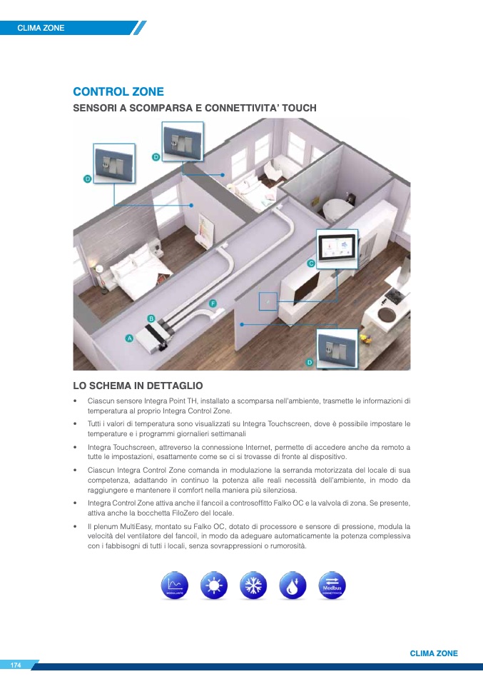 • Integra Control Zone attiva anche il fancoil a controsoffitto Falko OC e la valvola di zona. Se presente,