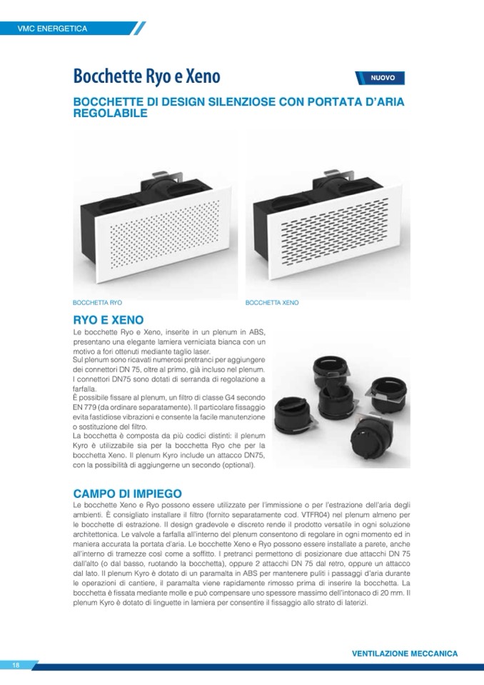 Le bocchette Ryo e Xeno, inserite in un plenum in ABS,