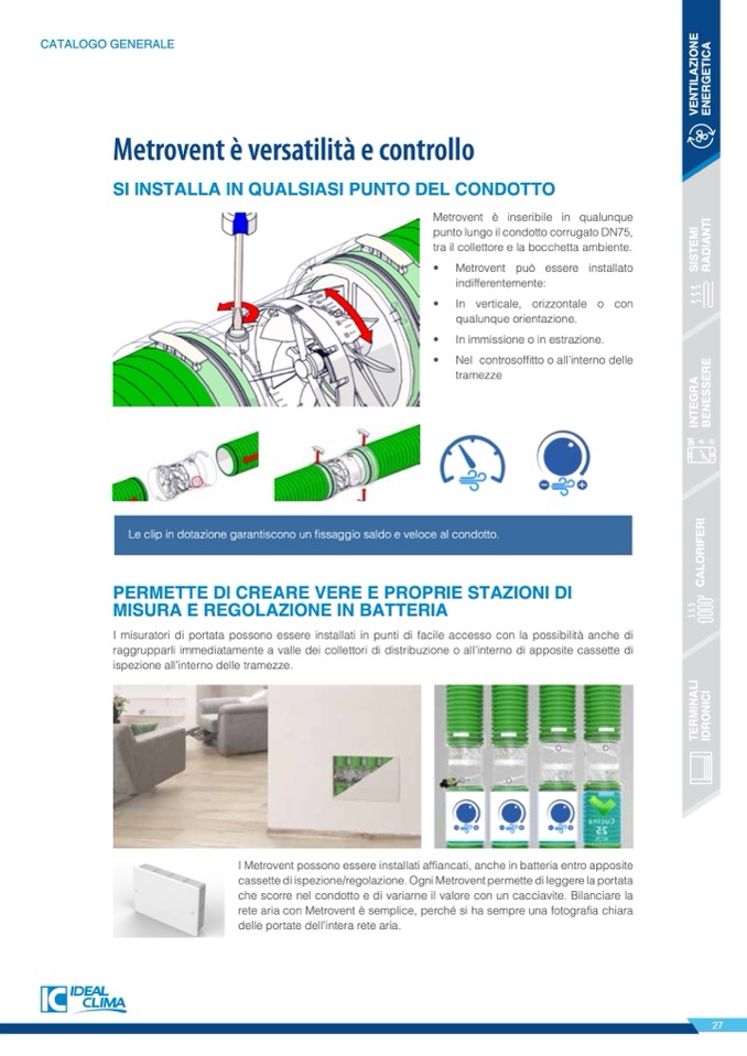 cassette di ispezione/regolazione. Ogni Metrovent permette di leggere la portata
