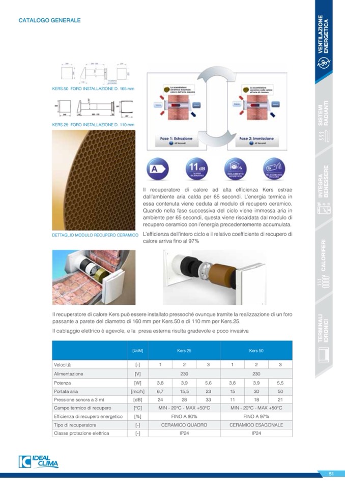passante a parete del diametro di 160 mm per Kers.50 e di 110 mm per Kers.25.