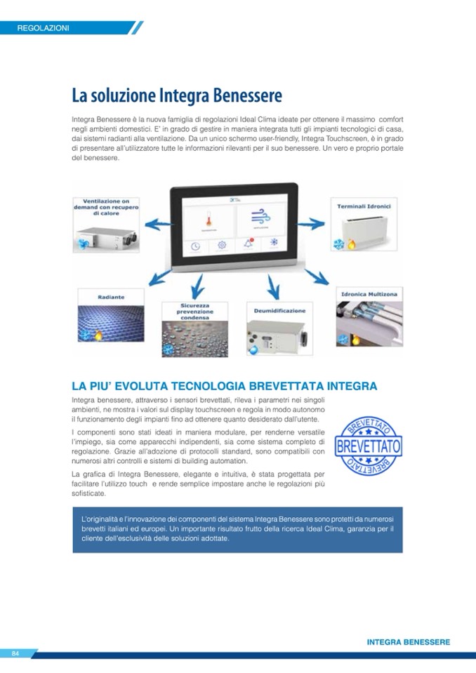 dai sistemi radianti alla ventilazione. Da un unico schermo user-friendly, Integra Touchscreen,