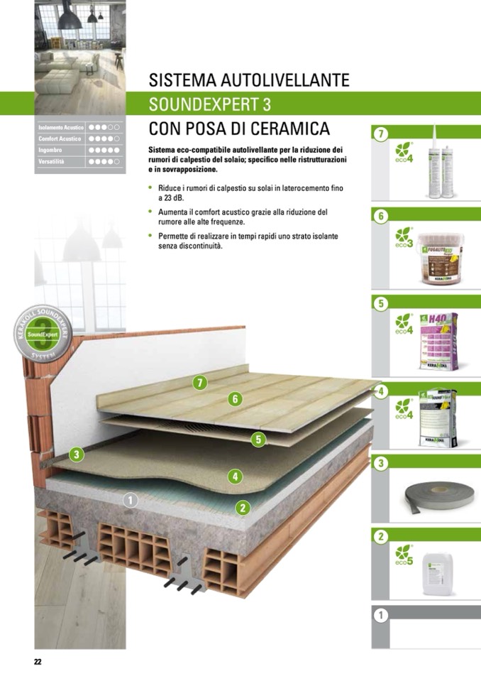 • Riduce i rumori di calpestio su solai in laterocemento fino
