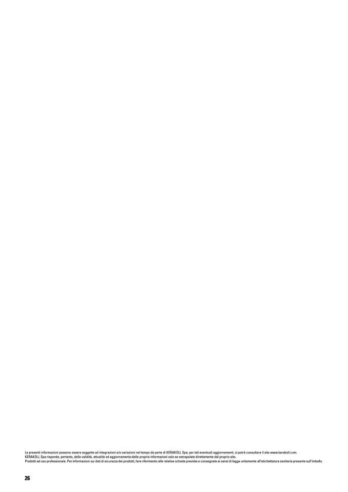 Le presenti informazioni possono essere soggette ad integrazioni e/o variazioni nel tempo da parte di KERAKOLL Spa; per tali eventuali aggiornamenti, si potrà consultare il sito www.kerakoll.com.