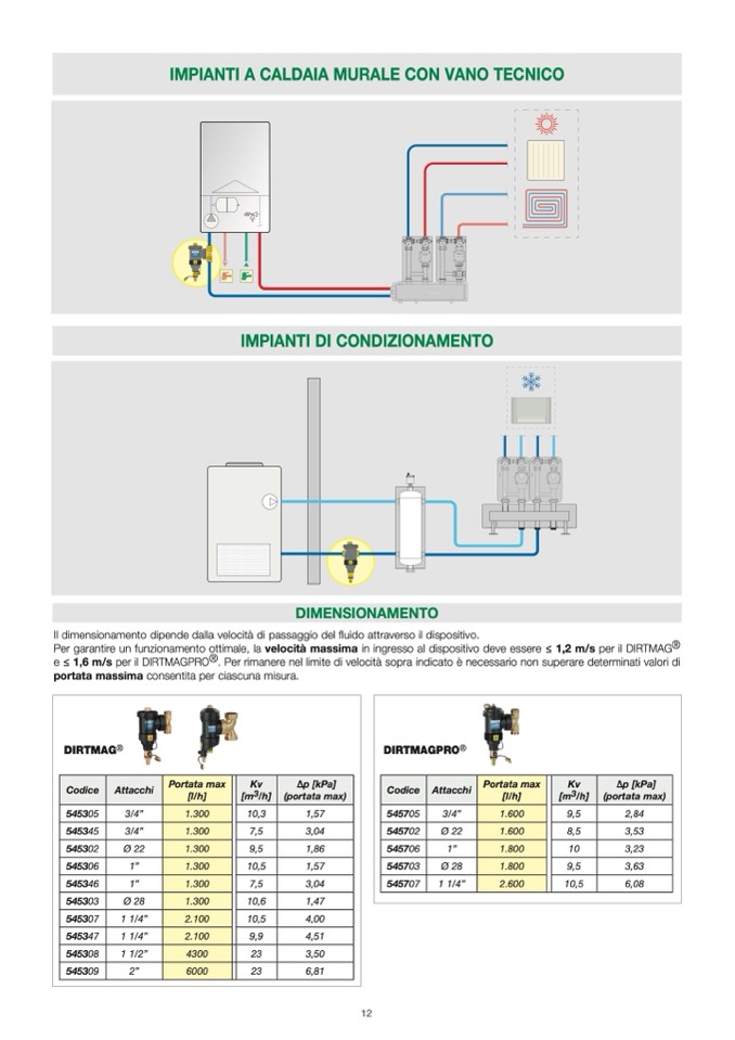 Per garantire un funzionamento ottimale, la velocità massima in ingresso al dispositivo deve essere ≤ 1,2 m/s per il DIRTMAG®