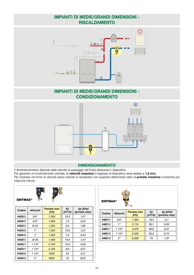 Il dimensionamento dipende dalla velocità di passaggio del fluido attraverso il dispositivo