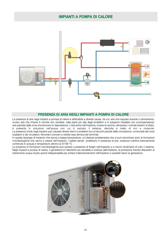 La presenza di aria negli impianti a pompa di calore è attribuibile a diverse cause, tra cui: aria non espulsa durante il caricamento