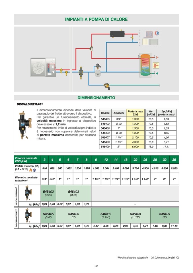 *Perdite di carico tubazioni r ~ 20-22 mm c.a./m (50 °C)