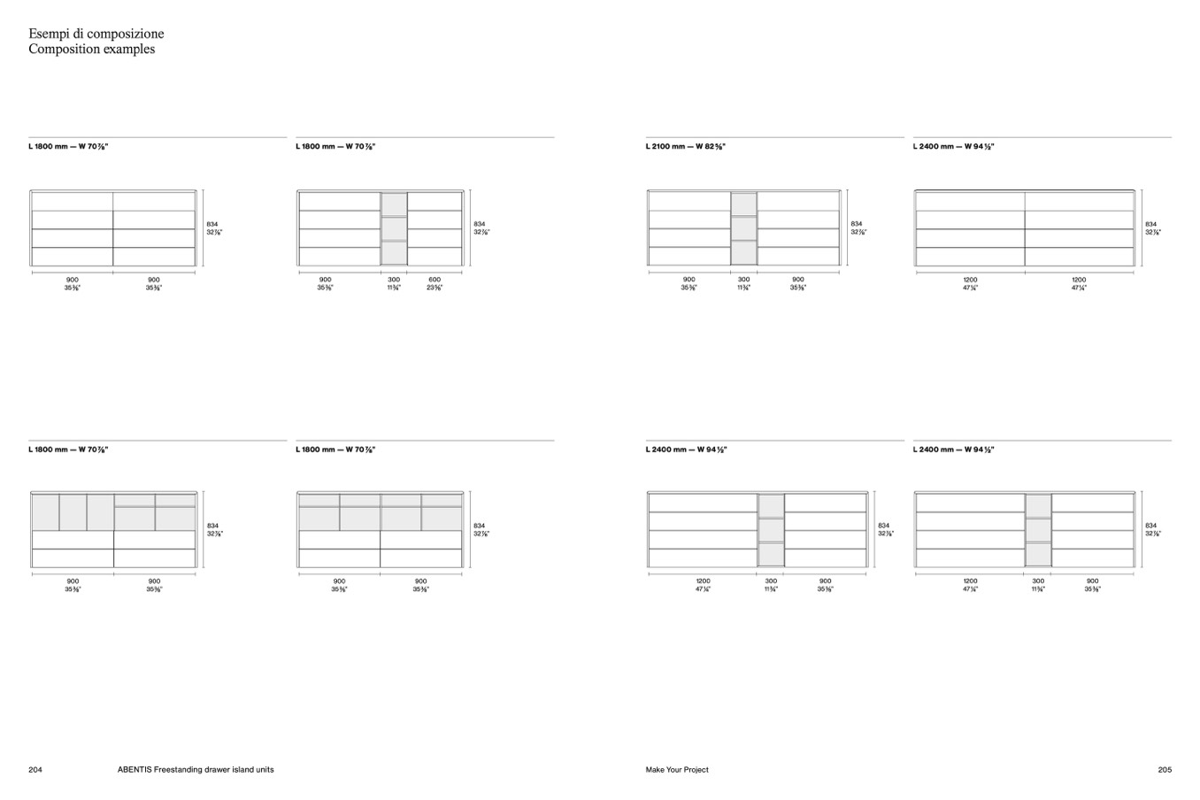 L 2400 mm — W 941/2”