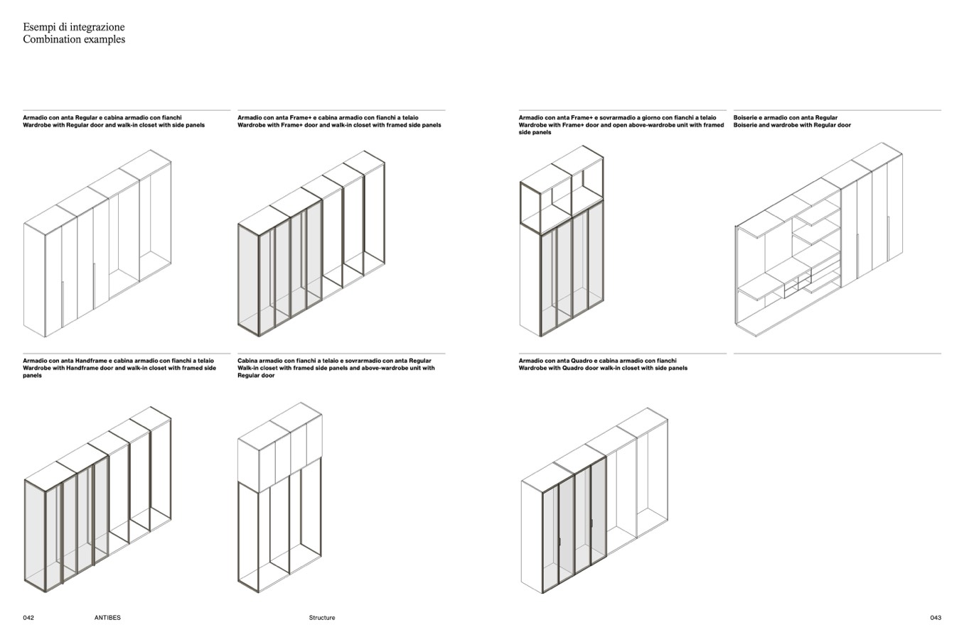 Armadio con anta Handframe e cabina armadio con fianchi a telaio
