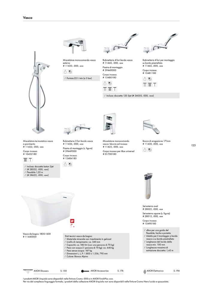 I prodotti AXOR Urquiola sono disponibili nella finitura Cromo -000 e in AXOR FinishPlus -xxx.
