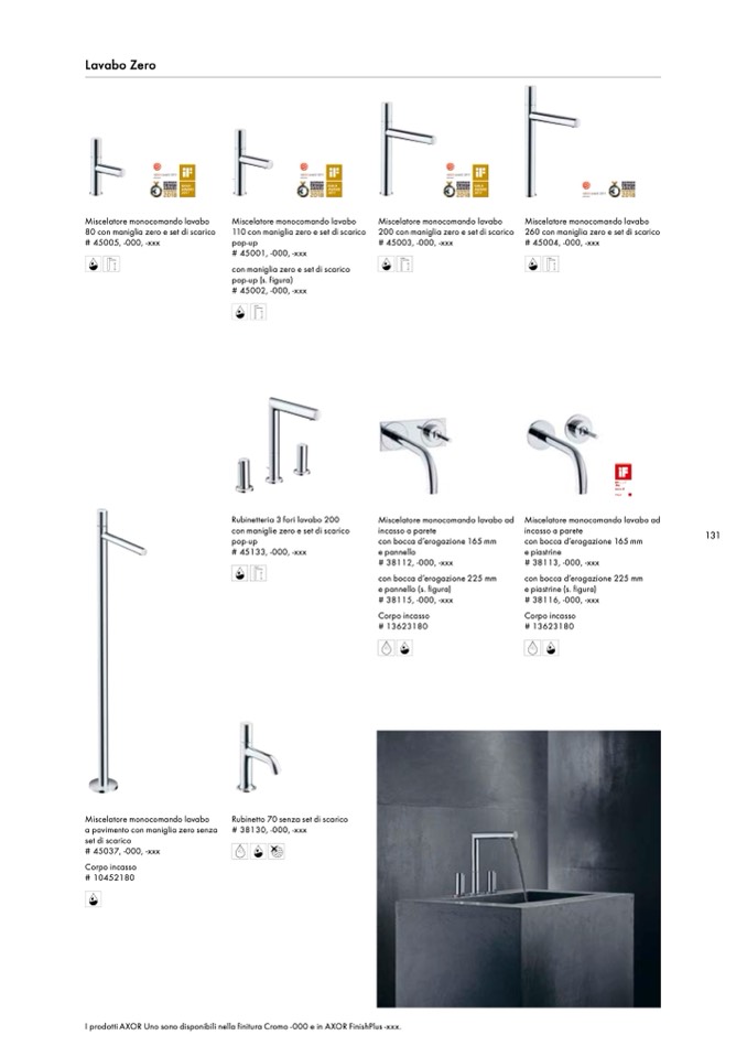 I prodotti AXOR Uno sono disponibili nella finitura Cromo -000 e in AXOR FinishPlus -xxx.