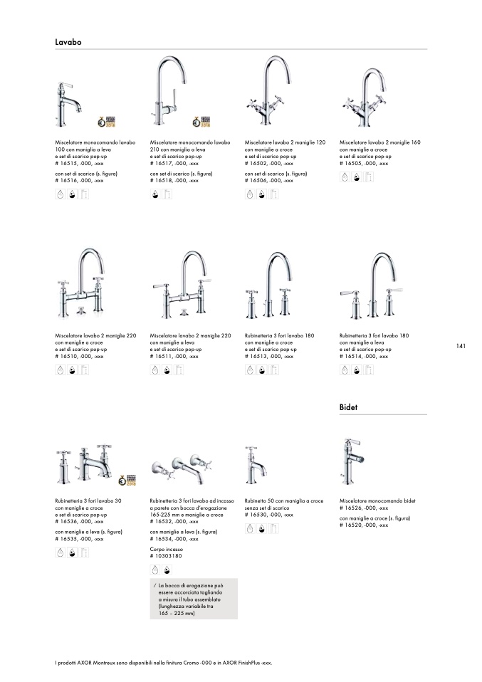 I prodotti AXOR Montreux sono disponibili nella finitura Cromo -000 e in AXOR FinishPlus -xxx.