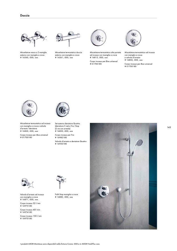 I prodotti AXOR Montreux sono disponibili nella finitura Cromo -000 e in AXOR FinishPlus -xxx.
