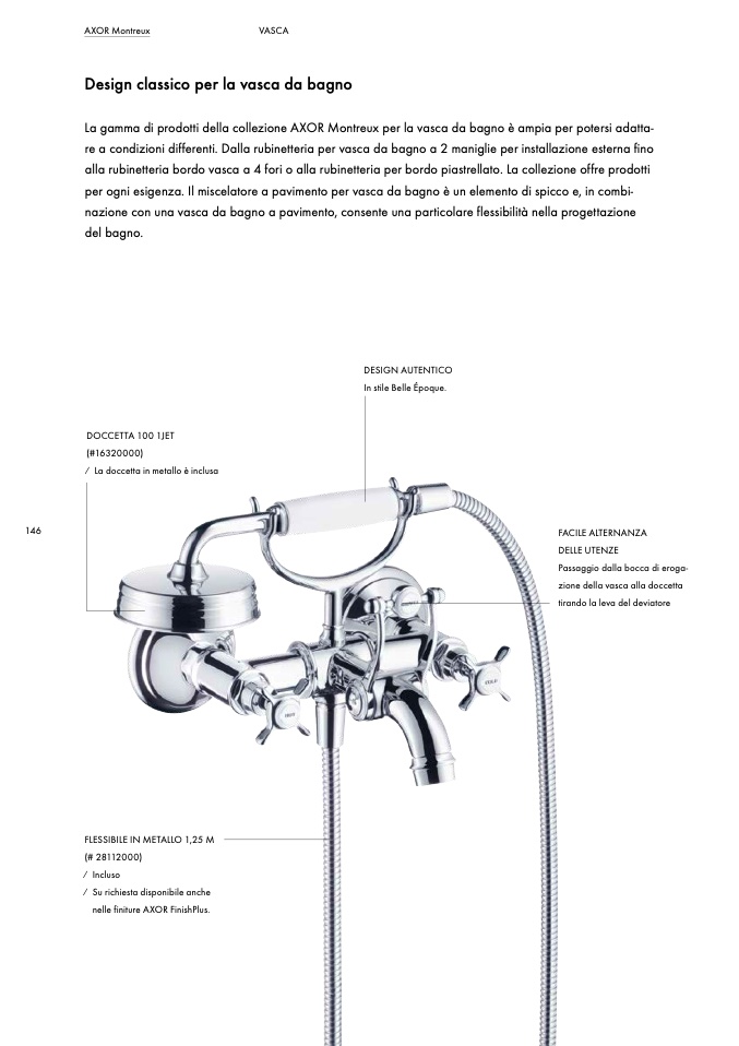 La gamma di prodotti della collezione AXOR Montreux per la vasca da bagno è ampia per potersi adatta-