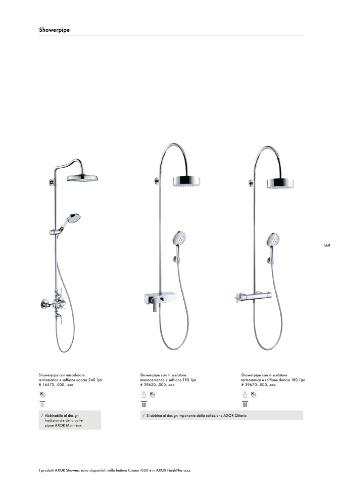 I prodotti AXOR Showers sono disponibili nella finitura Cromo -000 e in AXOR FinishPlus -xxx.