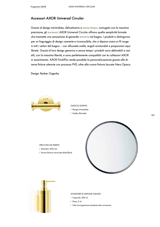 precisione, gli accessori AXOR Universal Circular offrono quella semplicità formale