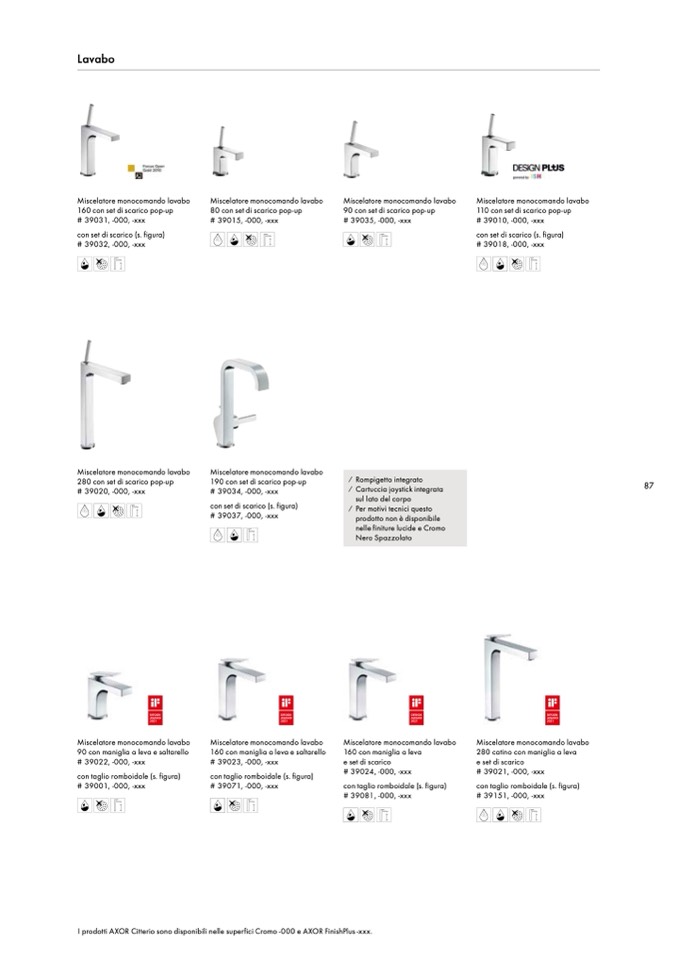 I prodotti AXOR Citterio sono disponibili nelle superfici Cromo -000 e AXOR FinishPlus -xxx.