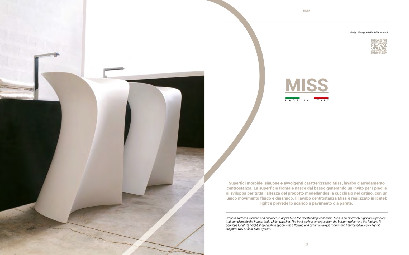 unico movimento fluido e dinamico. Il lavabo centrostanza Miss è realizzato in Icetek