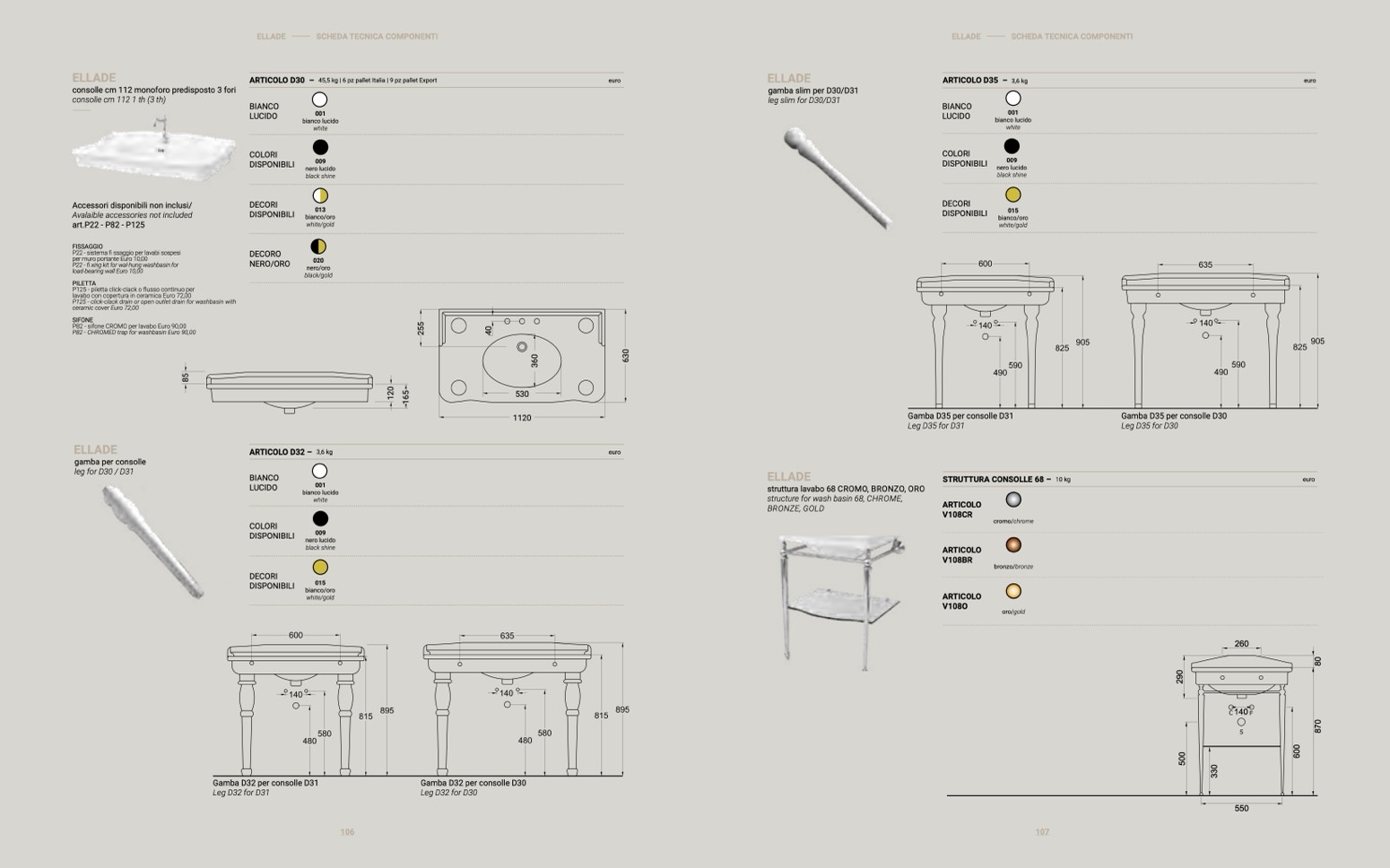 struttura lavabo 68 CROMO, BRONZO, ORO