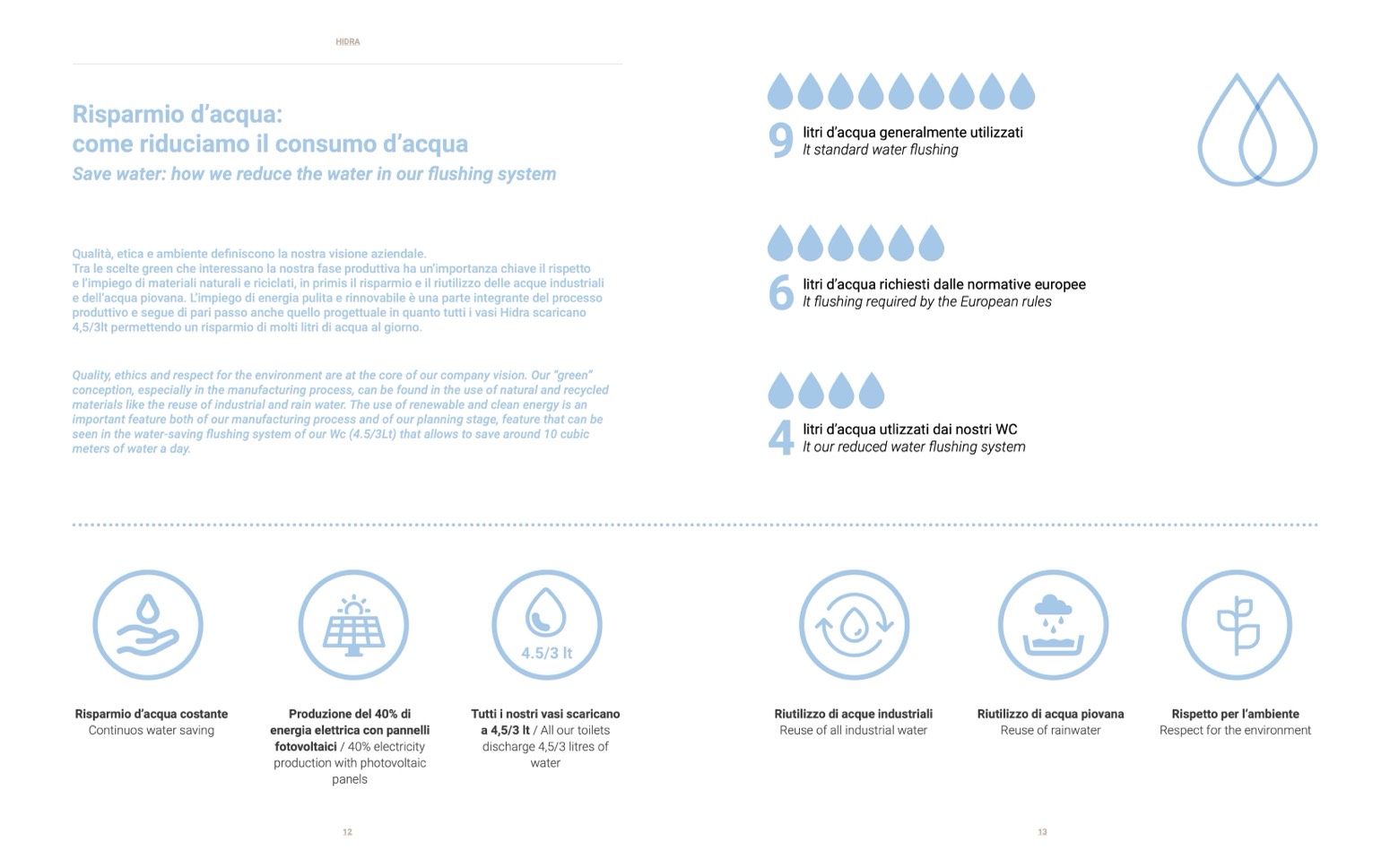 produttivo e segue di pari passo anche quello progettuale in quanto tutti i vasi Hidra scaricano