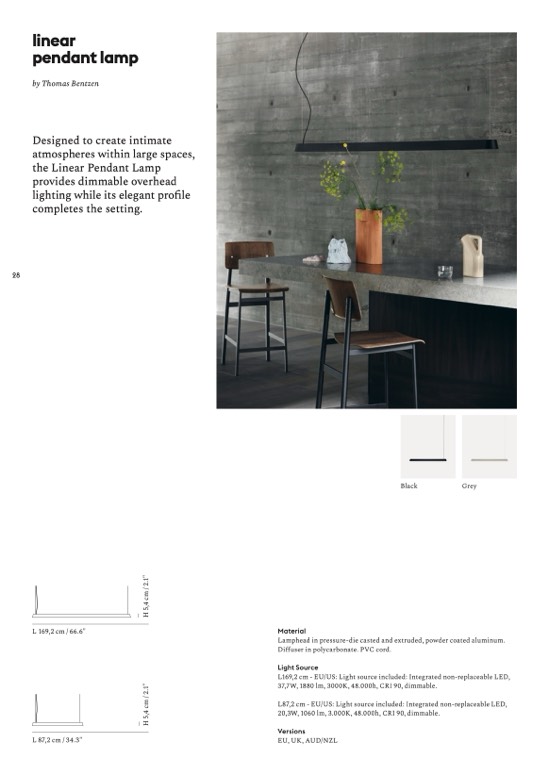 L169,2 cm - EU/US: Light source included: Integrated non-replaceable LED,