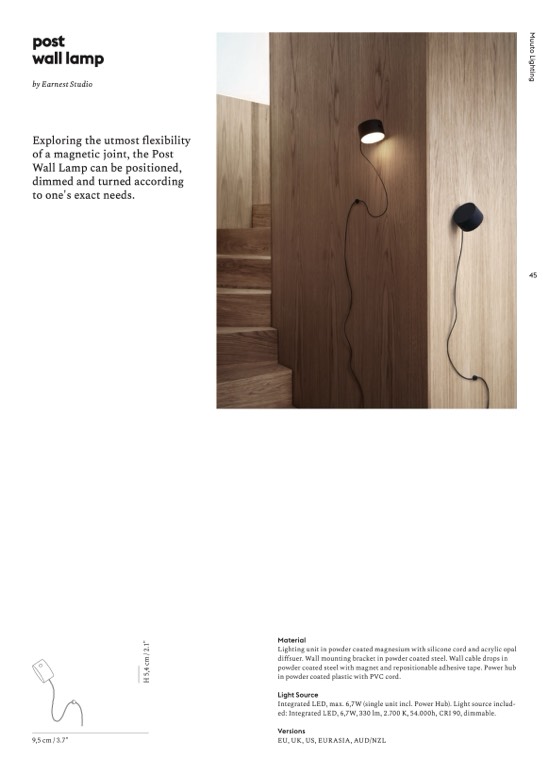 ed: Integrated LED, 6,7W, 330 lm, 2.700 K, 54.000h, CRI 90, dimmable.