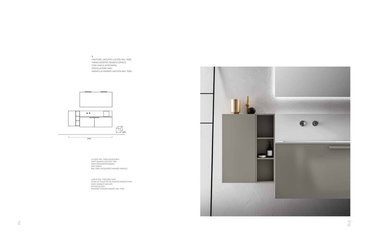 PLAN DE TOILETTE EN OCRITEC BIANCO MAT